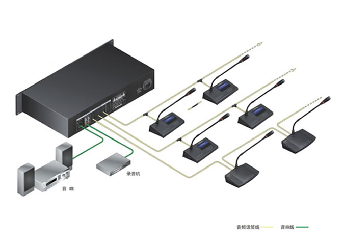 *可拨插式鹅颈话筒带红色发言指示光环;